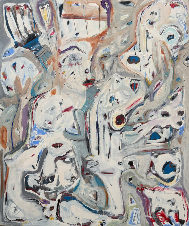 Ratowsky approaches the canvas as an active field in which image and material develop simultaneously. Through layered application and repeated reworking, forms surface, dissolve, and reassert themselves within the density of paint. Nothing is fixed. Each area remains subject to pressure and revision as the composition moves toward provisional coherence.