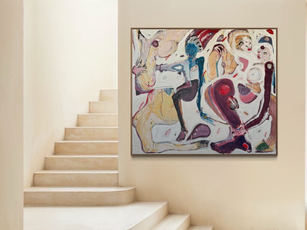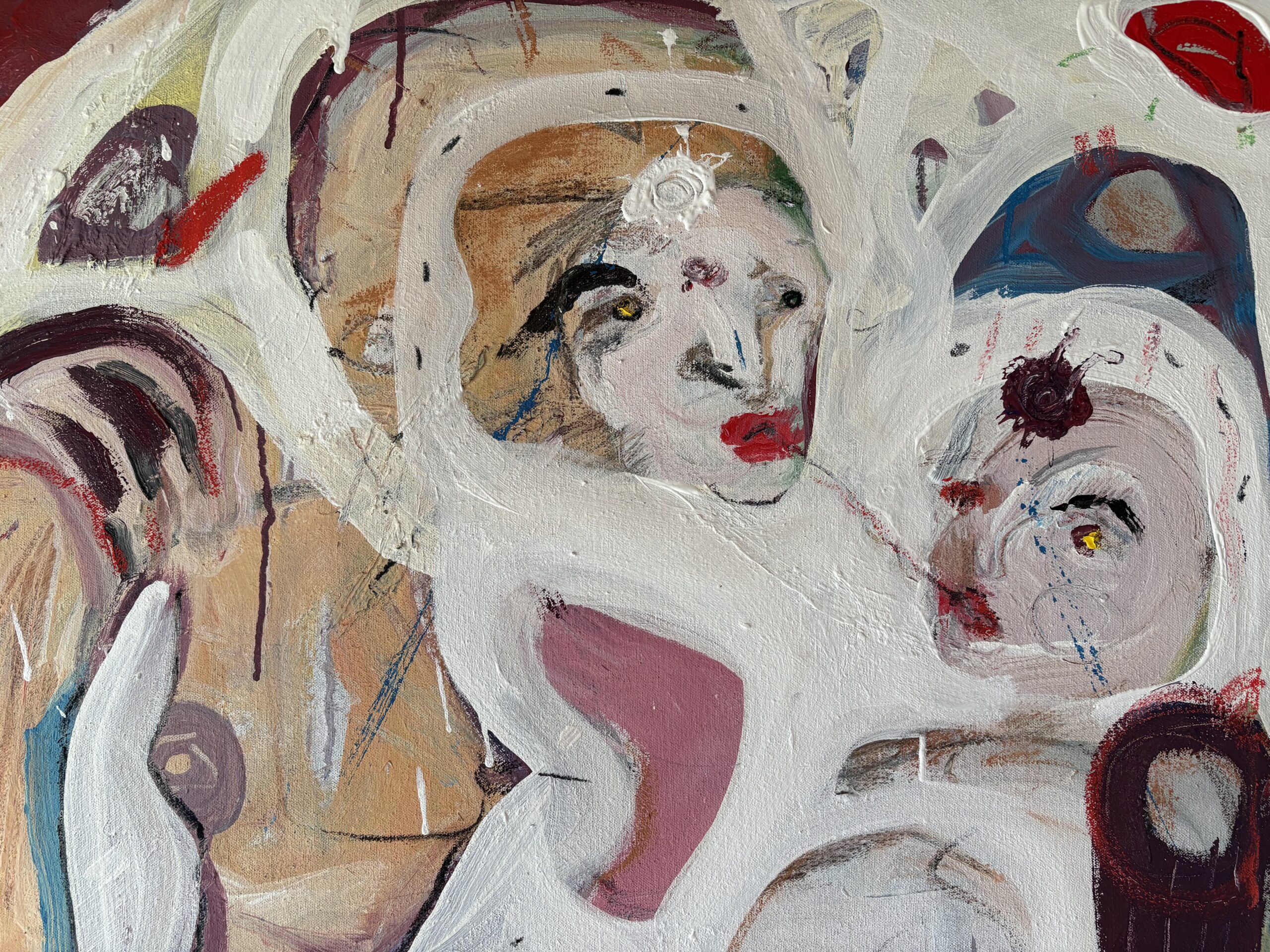 Acrylic, charcoal, pastel, oil stick, clay on canvas