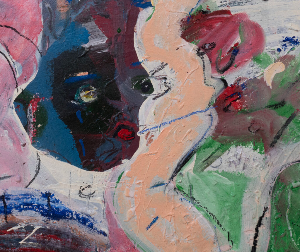 Acrylic, charcoal, pastel, oil stick, clay on canvas
